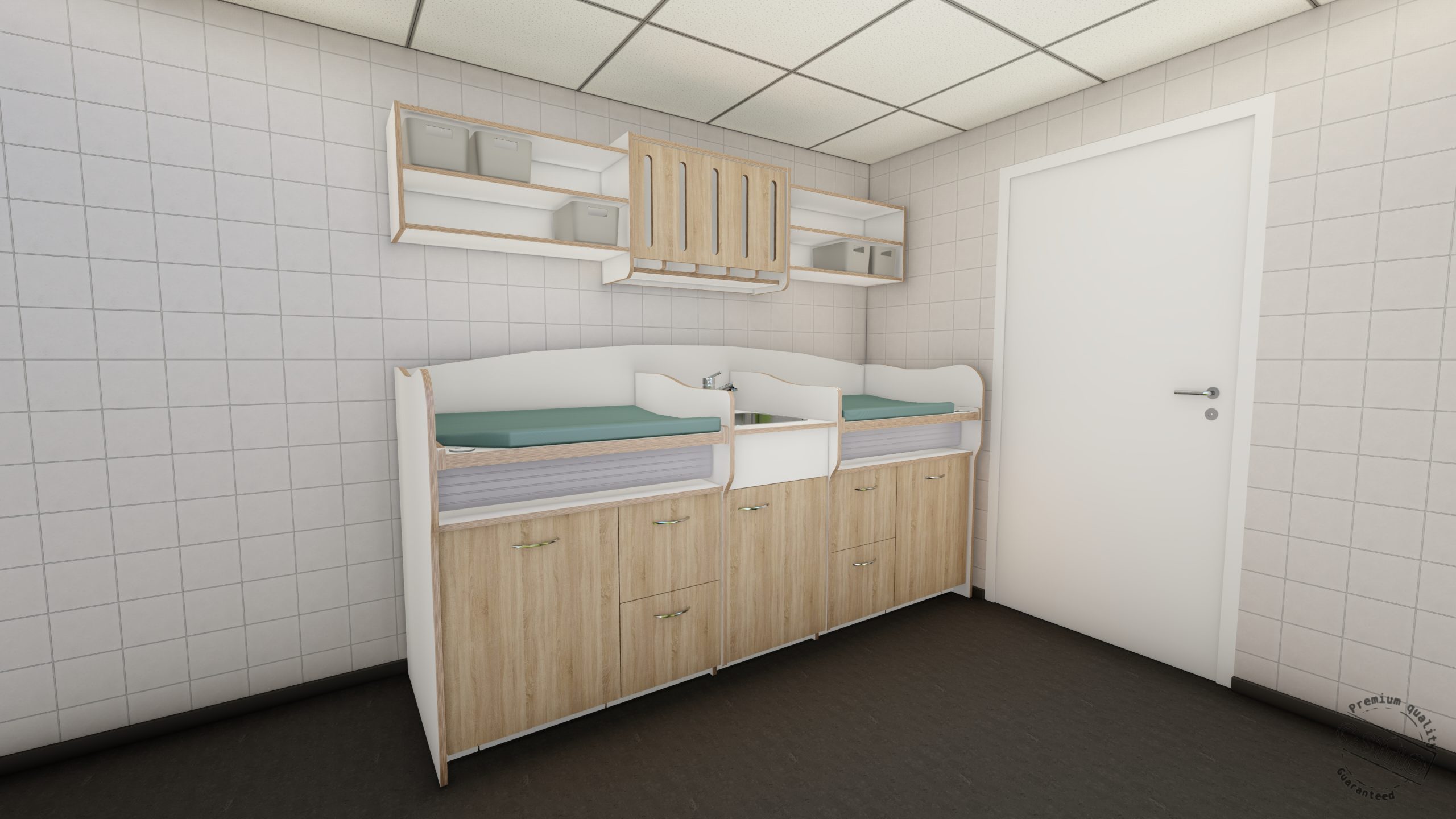De aankleedtafels zijn standaard uitgevoerd met een 18 mm berken multiplex met een toplaag van wit HPL. Dit maakt de aankleedtafel zeer hygiënisch en gemakkelijk schoon te maken.