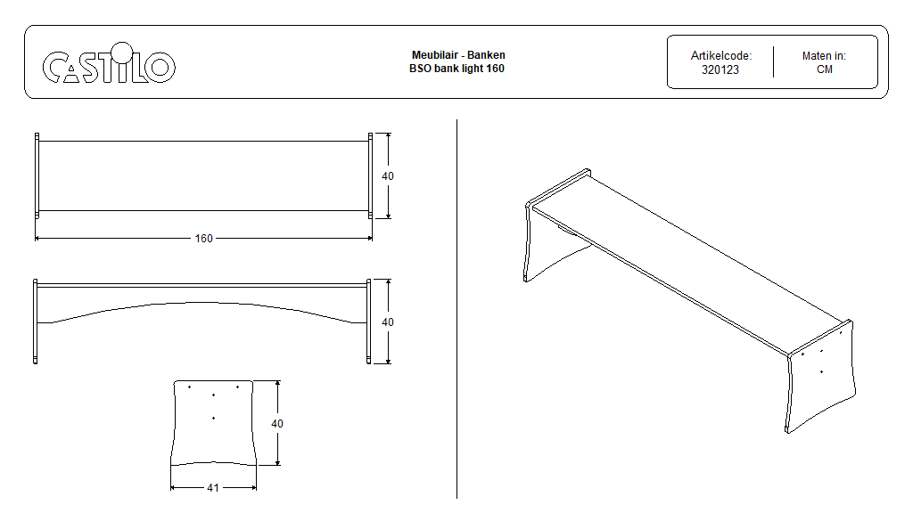 Lengte: 160 cm. Combineerbaar met de overige maten.