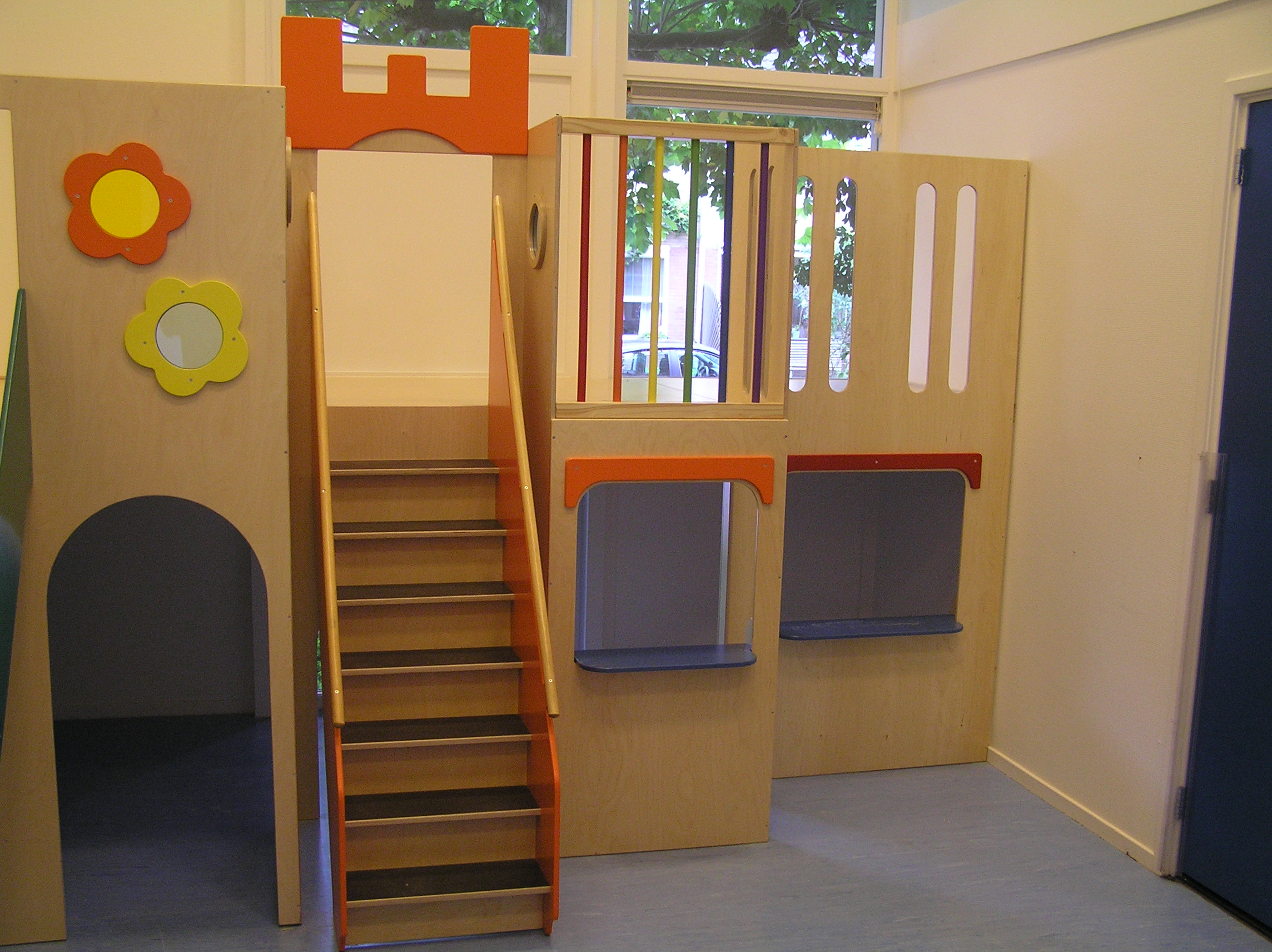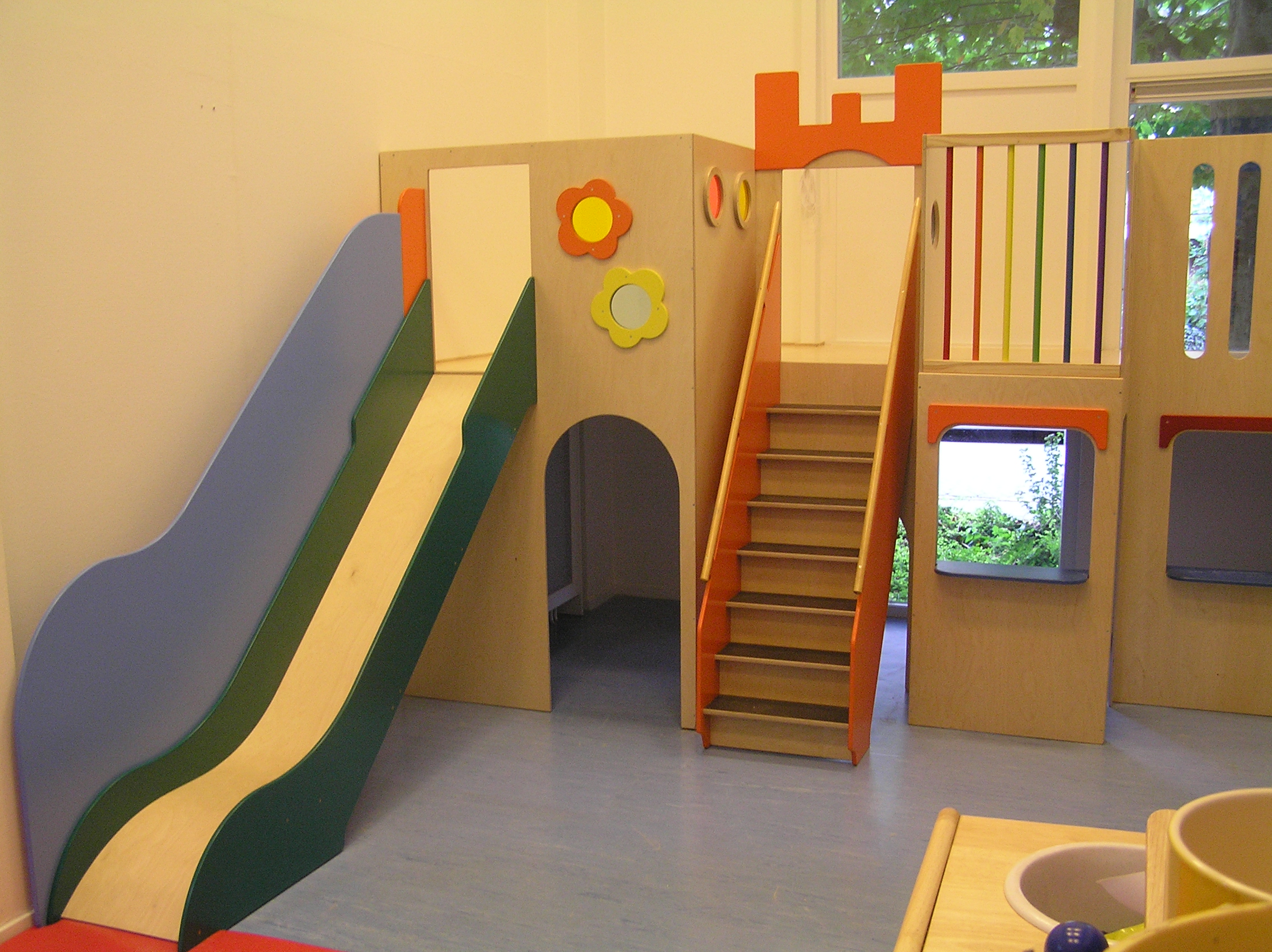 In een groep waar baby’s, peuters en kleuters samen zijn, wil elk kind zijn eigen plek. Het combitoestel van Castilo geeft die plek vorm. Het speelhuisgedeelte op de begane grond biedt een uitnodigende, overzichtelijke speelomgeving voor de jongsten — met een glijbaan als bruggenbouwer tussen boven en beneden. Daarboven wacht het verhoogde plateau: een eigen domein voor de oudere kinderen die toe zijn aan meer avontuur en meer ruimte. Geen conflict, geen gedrang — ieder kind speelt op zijn eigen niveau.