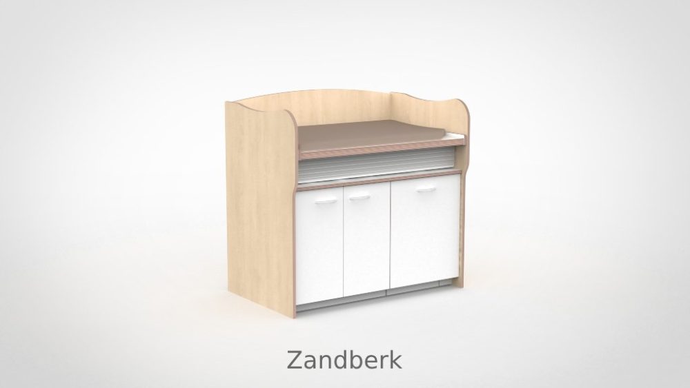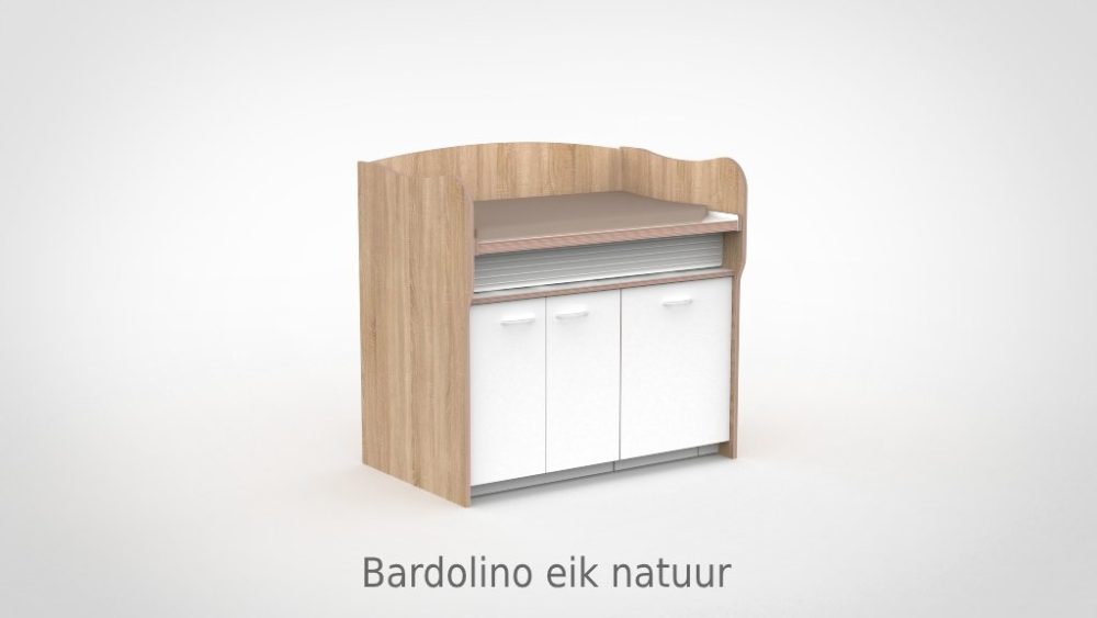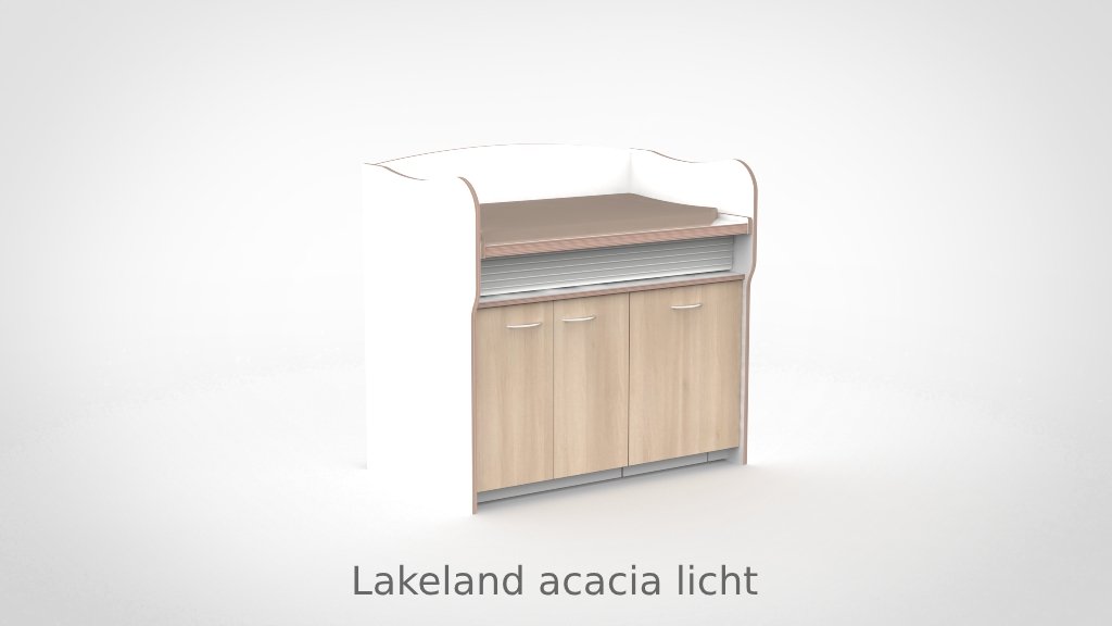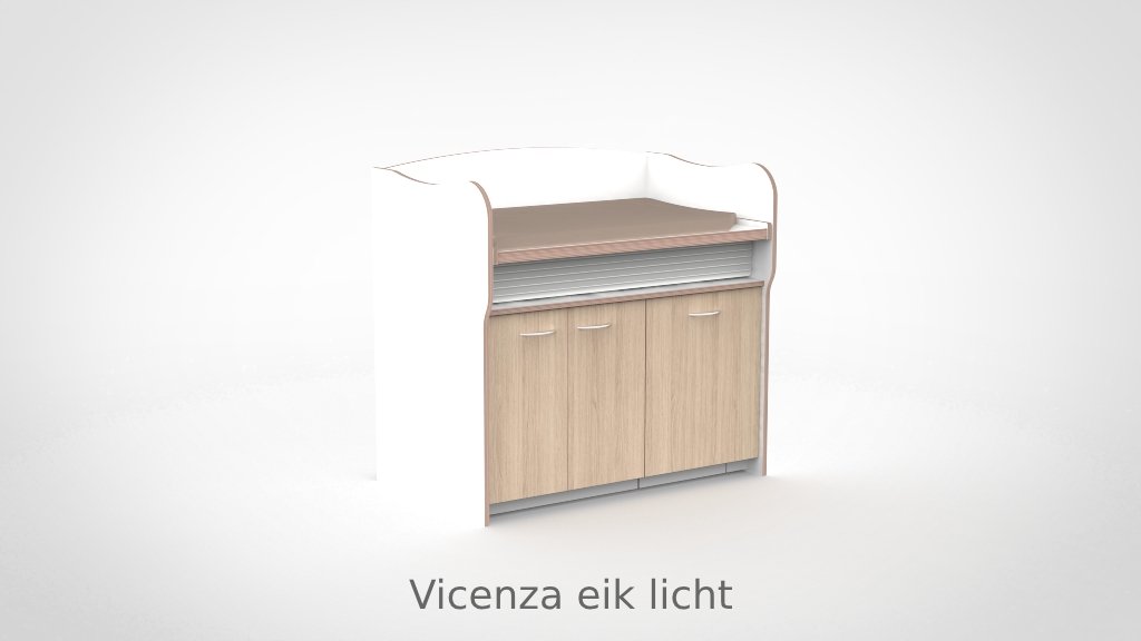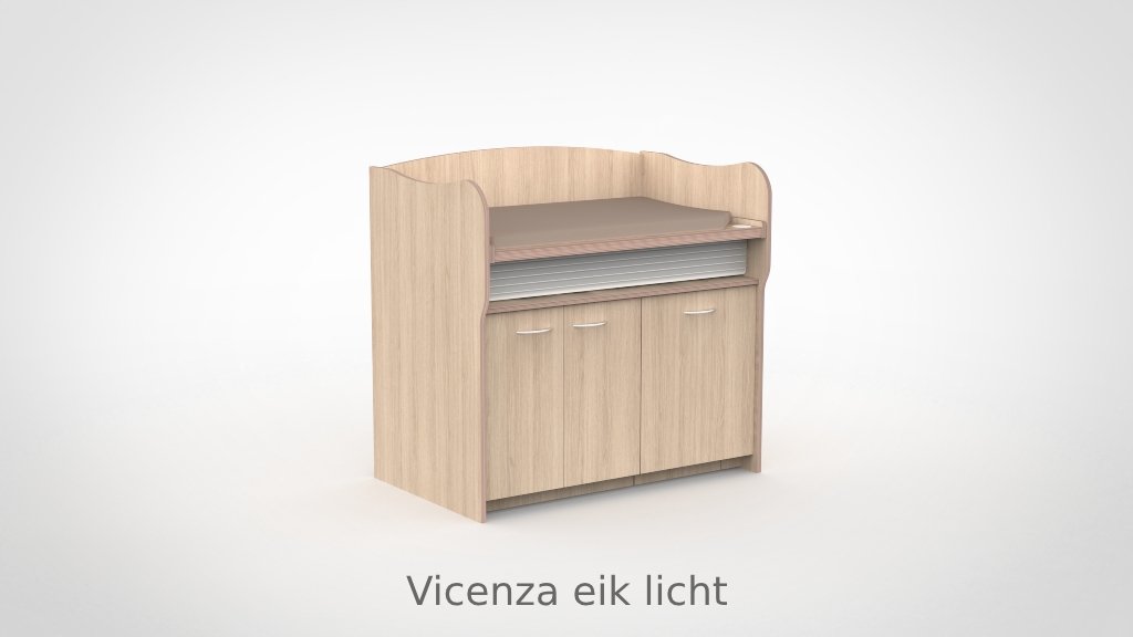 Niet elke babygroep heeft ruimte voor een breder model. De commode 125 cm biedt dezelfde ergonomische functionaliteit als de grotere uitvoeringen, in een formaat dat ook in kleinere verschoonruimtes goed past. Het touchpaneel met LED-display en kinderslot zit bevestigd onder het blad; tot drie persoonlijke werkhoogtes zijn instelbaar. Een rolluik sluit de tussenruimte tussen blad en onderkast netjes af bij elke stand. De opbergruimte achter de deuren houdt luiers, verzorgingsproducten en schone kleding overzichtelijk bij de hand.