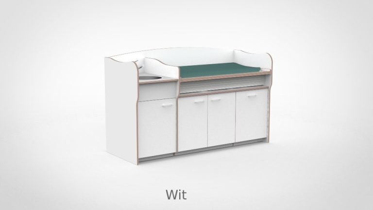 Twee medewerkers, twee baby’s, één werkplek — commode 200 cm meeliftend sanitair deuren