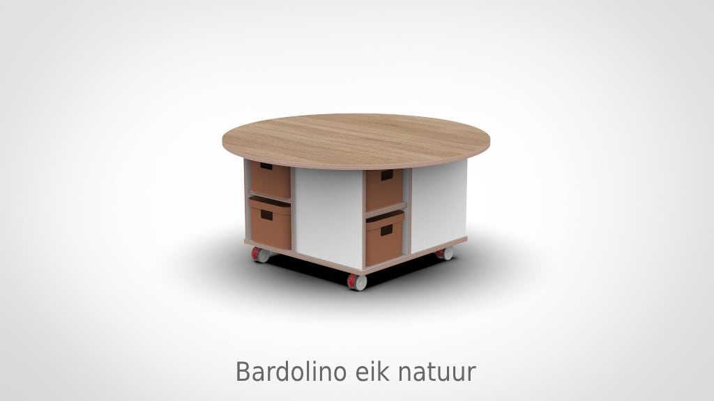 De laagste hoogte van 46 cm (A1) is geschikt voor de allerkleinsten die staand aan de tafel spelen en ontdekken. De hogere varianten, tot 64 cm (D4), sluiten aan bij oudere peuters en kleuters. Zo kiest u de hoogte die bij uw groep past, of combineert u meerdere hoogtes in één ruimte.