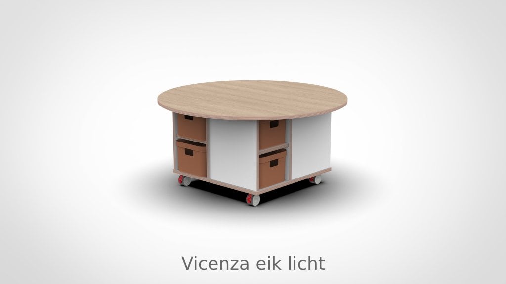 De Creatafel rond 110 cm is de compacte variant van de bekende Castilo creatietafel: zelfde kwaliteit, kleiner formaat. Met een diameter van 90 cm past deze ronde tafel uitstekend in hoeken, smalle ruimtes of bij kleine groepen. Kinderen zitten er prettig omheen én kunnen er moeiteloos staand aan spelen, wat de bewegingsvrijheid en de speeldynamiek ten goede komt.