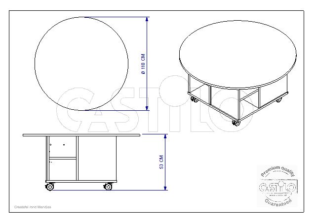 De Creatafel rond 110 cm wordt vervaardigd in de Castilo werkplaats in Opmeer uit FSC-gecertificeerd berkenmultiplex. De afwerking is stootvast, kindveilig en eenvoudig schoon te houden. Scherpe hoeken en uitstekende delen ontbreken. De tafel voldoet aan de geldende veiligheidsnormen voor gebruik in de kinderopvang.