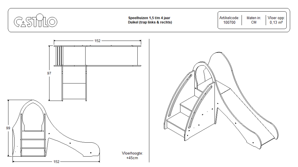 Andere kleurcombinatie gewenst of specifieke aanpassing nodig voor uw ruimte? Castilo denkt graag mee over een oplossing die perfect past bij uw kinderopvang. Geef uw wensen door in het opmerkingenveld of neem contact op voor maatwerk speeltoestellen.