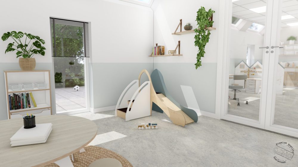 Het vrolijke design nodigt kinderen uit tot actief spelen en stimuleert de motorische ontwikkeling. Door te klauteren, klimmen en glijden bouwen kinderen aan hun zelfvertrouwen en leren ze spelenderwijs risico’s inschatten. De degelijke constructie met stevige leuningen en antisliplaag op traptreden biedt ouders en leidsters de gemoedsrust die zij verdienen.