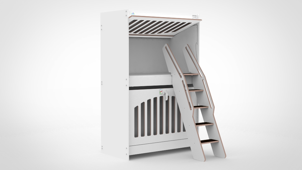 Onze duoslaper met kanteldeuren biedt comfortabele slaapruimte voor twee kinderen in een compact formaat. De kanteldeuren maken het verschonen van bedden ergonomisch en eenvoudig, zonder dat u hoeft te bukken of te reiken. Ideaal voor kleinere babygroepen of als flexibele aanvulling op uw slaapruimte.