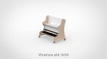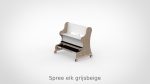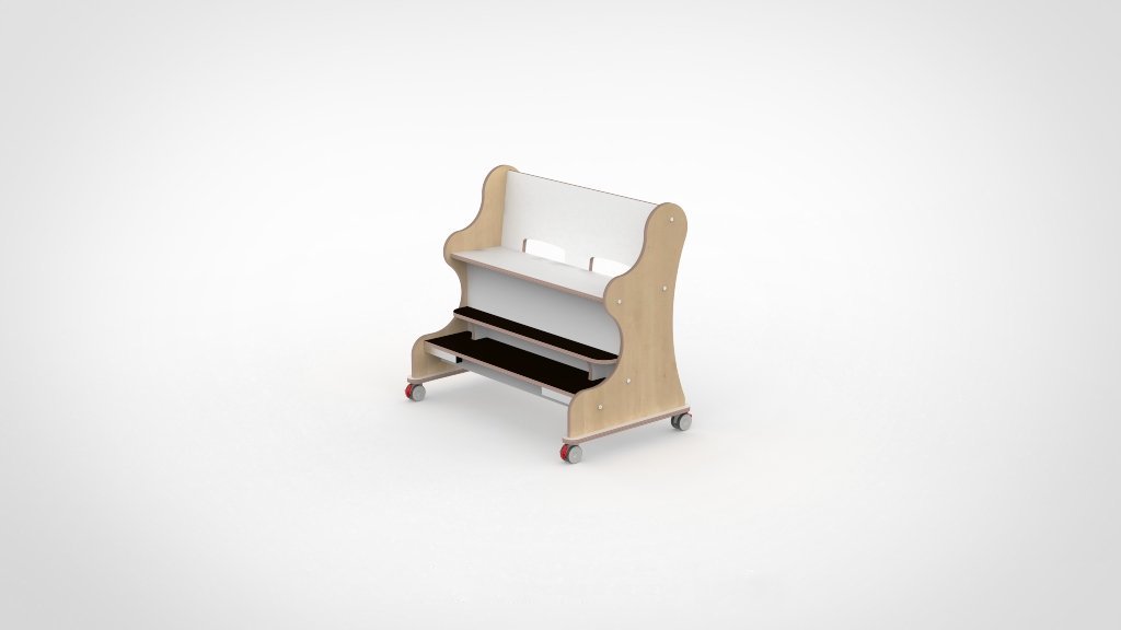 Vervaardigd uit 18 mm FSC-gecertificeerd berkenmultiplex met een slijtvaste witte HPL-toplaag. Vier zwenkwielen met dubbele rem. Babyzitjes en stoelverkleiners optioneel beschikbaar. Het meubel voldoet aan de geldende eisen voor meubilair in de kinderopvang.