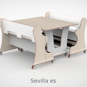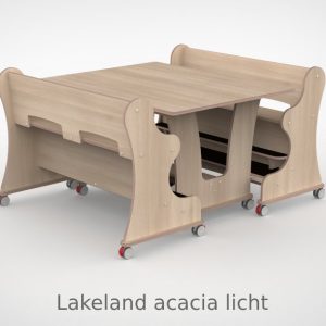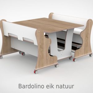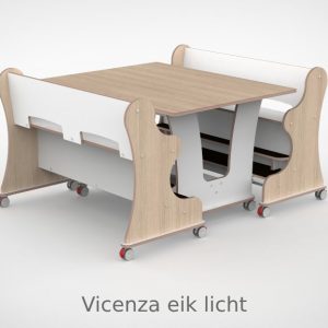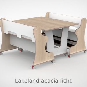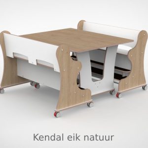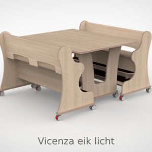 – Banken hebben een breedte van 128,7cm en een zithoogte van 55 cm. Vanaf de zitting tot hoge voetenplank is de afmeting 22cm de lage voetenplank vanaf zitting is 33cm. – Tafel is L x B x H = 128,7 x 100 x 75 cm. – Banken en tafel zijn uitgevoerd met standaard wit HPL toplaag, deze is zeer slijt en krasvast. Voor houtdecor zie keuzemenu. – Per bank zijn er 4 zwenkwielen gemonteerd met rem. – Onder de tafel zijn standaard zijn 4 zwenkwielen gemonteerd met rem. – Bij levering tot 1.000,00 incl. btw rekenen wij 55,00 euro bezorgkosten, voor levering op verdieping vragen wij u contact met ons op te nemen. – Voor levering buiten Nederland en de Waddeneilanden, neem dan contact op voor de mogelijkheden.Gerelateerde producten