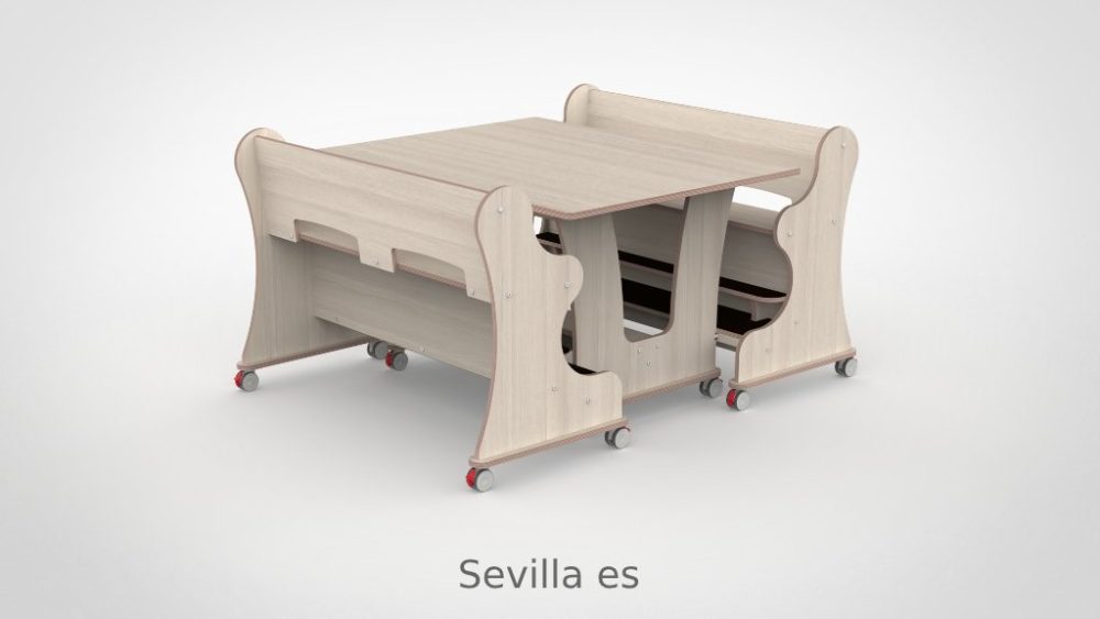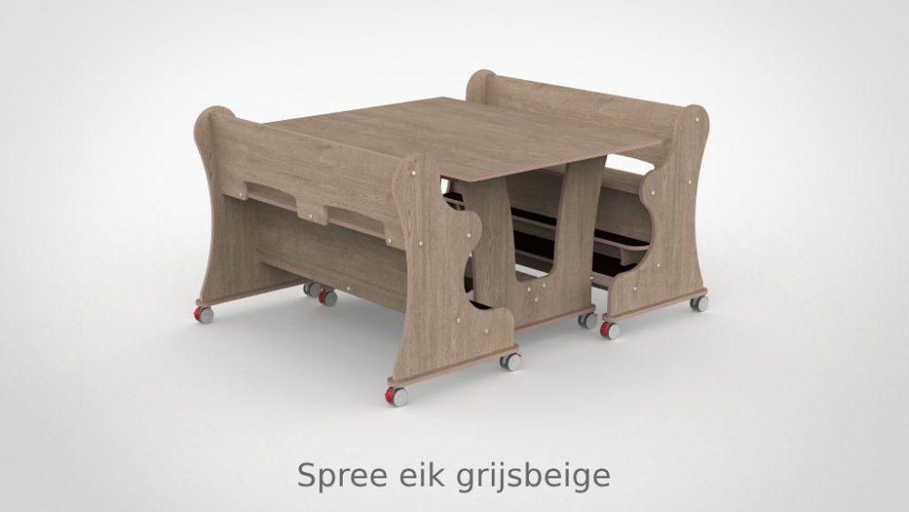 - Magneetkoppelsysteem: tafel en banken als één geheel verplaatsbaar