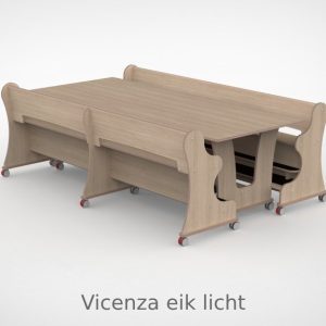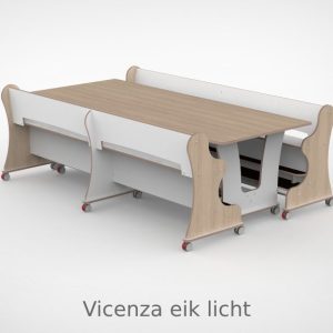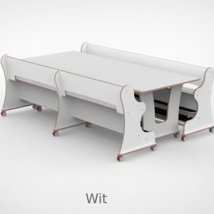 – Banken en tafel zijn opgebouwd uit 18 mm berken multiplex met standaard wit HPL toplaag, deze is zeer slijt en krasvast. – Banken en tafel worden standaard geleverd met wit HPL zitting/tafelblad. – Per bank zijn er 6 zwenkwielen gemonteerd met rem. – Onder de tafel zijn standaard zijn 4 zwenkwielen gemonteerd met rem. – Bij levering tot 1.000,00 incl. btw rekenen wij 55,00 euro bezorgkosten, voor levering op verdieping vragen wij u contact met ons op te nemen. – Voor levering buiten Nederland en de Waddeneilanden, neem dan contact op voor de mogelijkheden.