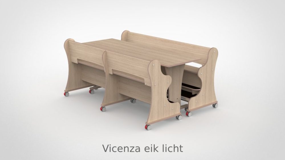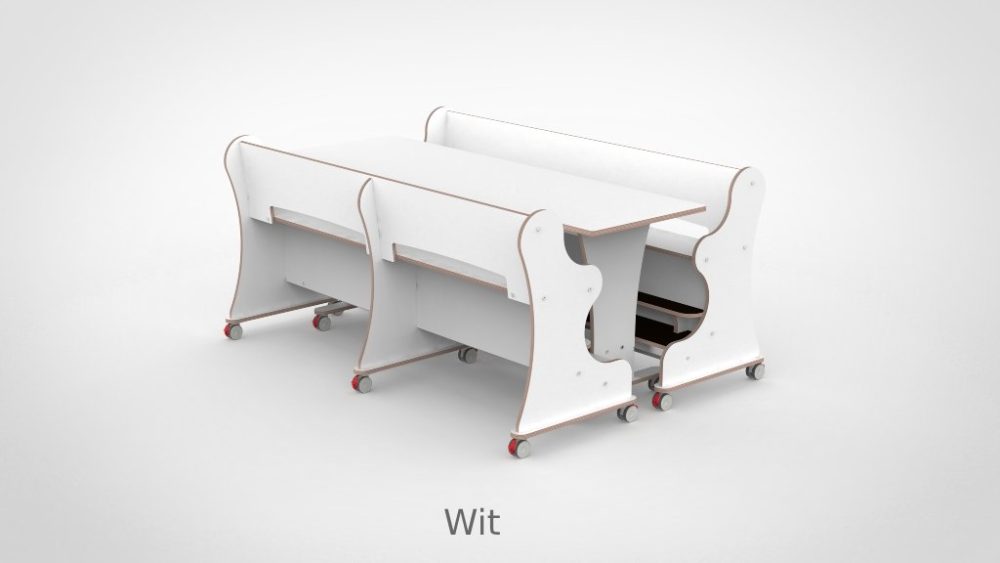 - Magneetkoppelsysteem: tafel en banken als één geheel verplaatsbaar