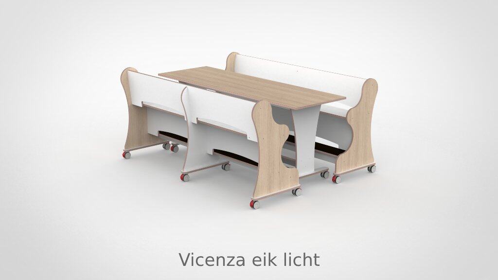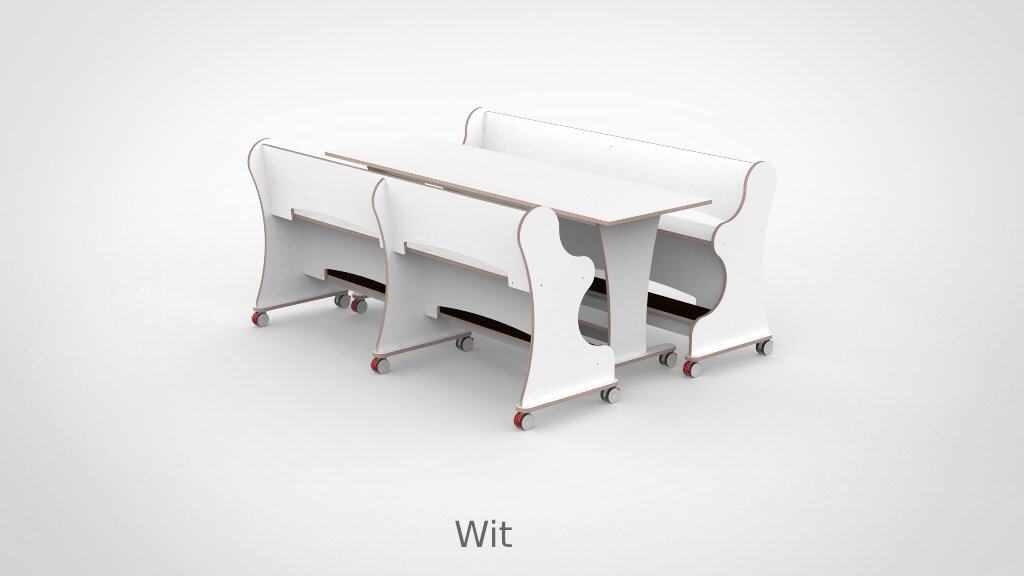 – Banken hebben een breedte van 188,7cm en een zithoogte van 55 cm. – Tafel is L x B x H = 188,7 x 60 x 75 cm. – Banken en tafel zijn opgebouwd uit 18 mm berken multiplex met standaard wit HPL toplaag, deze is zeer slijt en krasvast. – Banken en tafel worden standaard geleverd met wit HPL zitting/tafelblad. – Per bank zijn er 6 zwenkwielen gemonteerd met rem. – Onder de tafel zijn standaard zijn 4 zwenkwielen gemonteerd met rem. – Bij levering tot 1.000,00 incl. btw rekenen wij 55,00 euro bezorgkosten, voor levering op verdieping vragen wij u contact met ons op te nemen. – Voor levering buiten Nederland en de Waddeneilanden, neem dan contact op voor de mogelijkheden.Gerelateerde producten
