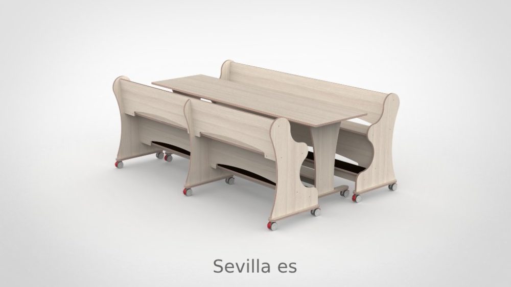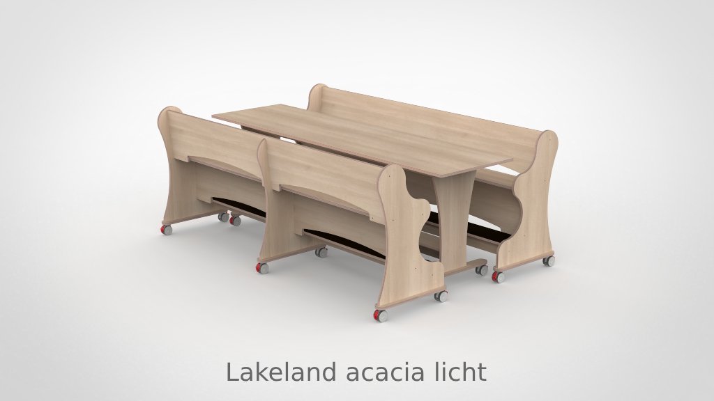 Tafel en twee banken, complete opstelling — de ergocombi dubbel 60×210
