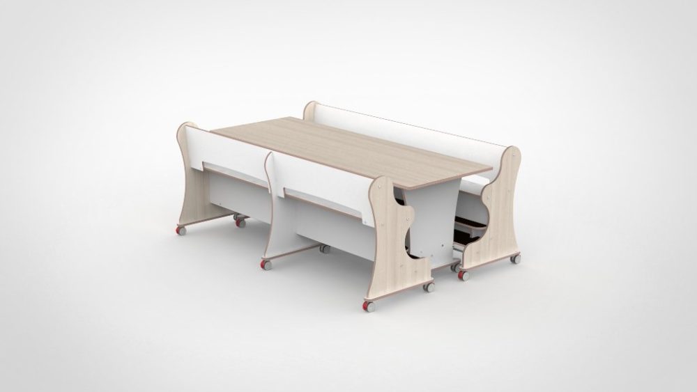 - Magneetkoppelsysteem: tafel en banken als één geheel verplaatsbaar