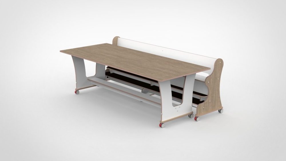 - Magneetkoppelsysteem: tafel en bank als één geheel verplaatsbaar
