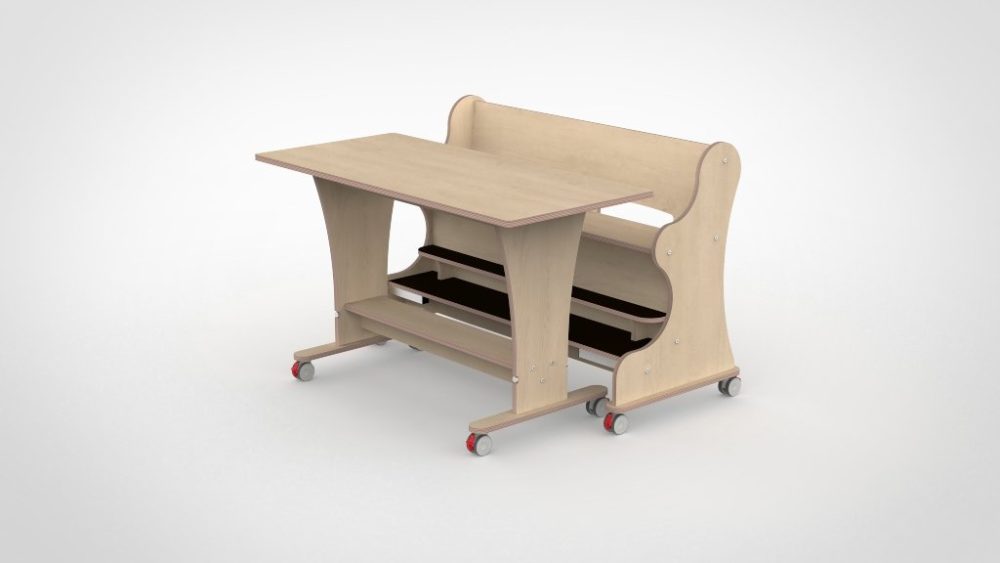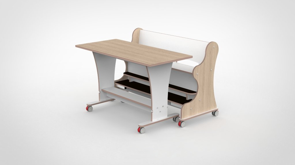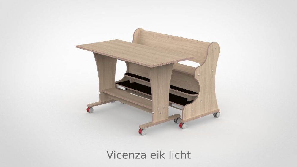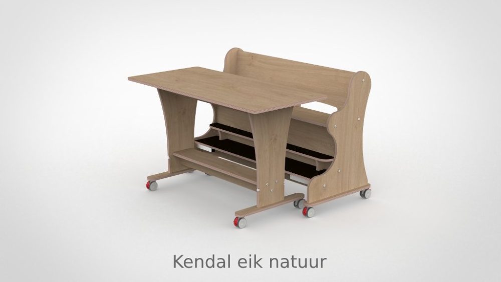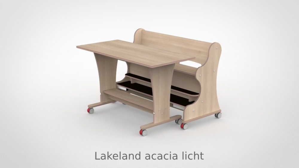 Tafel en bank voor twee à drie kinderen — met dubbele voetenplank voor optimale zitondersteuning en magneetkoppeling voor effeciënt dagelijks gebruik.