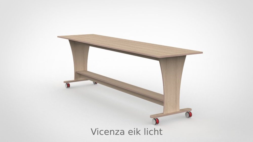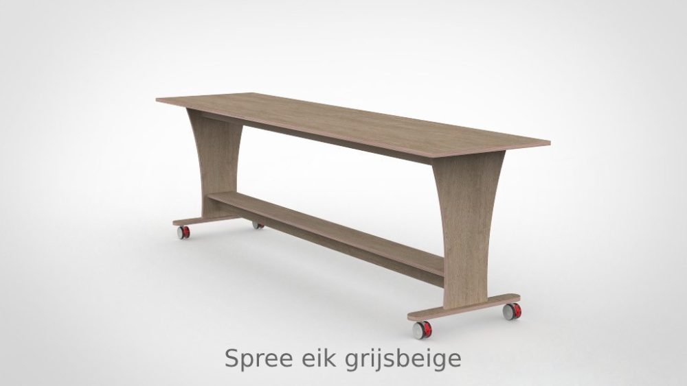 De ergotafel 60×240 biedt de meeste ruimte in de 60-breed lijn en is bedoeld voor de grootste groepen. Wat de 60 cm diepte daarbij bijzonder maakt: ook aan een tafel van bijna 250 cm blijft elk kind voor de pedagogisch medewerker direct bereikbaar — de compacte breedte laat geen kind buiten bereik vallen.