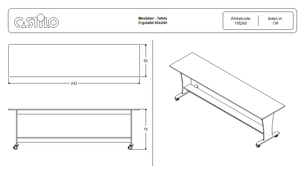 Wilt u weten of de ergotafel 60×240 past in uw opstelling? U kunt uw plattegrond met de maten naar ons opsturen, zodat wij meteen kunnen meedenken. U bent ook van harte welkom in onze showroom in Opmeer. Heeft u liever dat wij bij u langskomen? Ook een locatiebezoek behoort tot de mogelijkheden. Neem contact op via 0226 353 001 of info@castilo.nl.