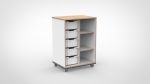 Met twee kolommen biedt deze kast serieuze opbergcapaciteit op een compact vloeroppervlak. De 101 cm hoogte maakt de kast geschikt als roomdivider waarbij volwassenen overzicht houden over de groep. Combineer open vakken onderin — waar kinderen zelfstandig pakken en opruimen — met gesloten vakken of lades bovenin voor materiaal dat niet voor kinderhanden bedoeld is. Zo benut u één meubel voor twee gebruikszones. Plaats meerdere configuraties naast elkaar en u creëert een doorlopende kastenwand met afwisselende indeling.