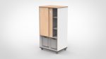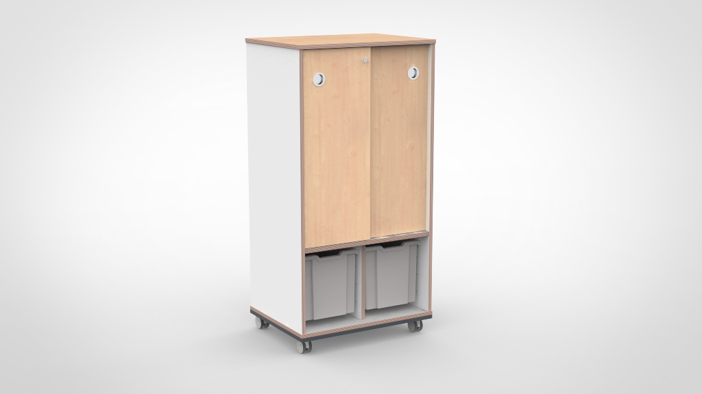 Vervaardigd uit 18 mm dik meubelpaneel met slijtvaste melamine afwerking. Alle randen zijn voorzien van een 2 mm ABS-afwerking die stoot- en slijtvast is. Deuren zijn voorzien van zachtsluitende scharnieren. Het meubel voldoet aan de geldende veiligheidsnormen voor gebruik in de kinderopvang. Verkrijgbaar in negen houtdecors met een apart te kiezen kleur voor het bovenblad.