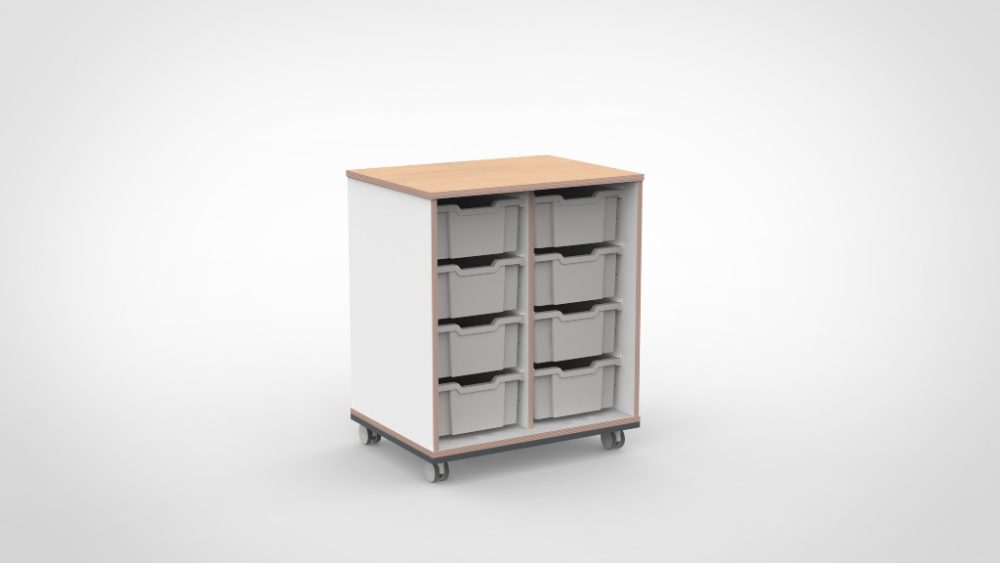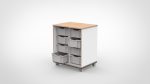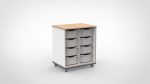 Of u nu volledig open vakken wilt voor een Montessori-achtige opzet, gesloten deuren voor een rustige uitstraling, Gratnell-lades voor gesorteerd knutselmateriaal of een slimme combinatie van dit alles — in dit formaat vindt u het. De negen standaardconfiguraties dekken de meest gevraagde indelingen. En mocht uw ideale indeling er net niet tussen staan, dan maakt onze werkplaats het op maat.