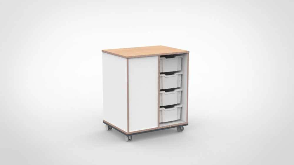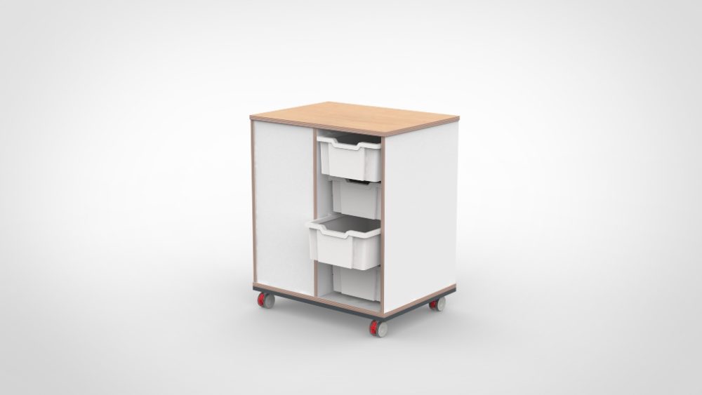 Of u nu volledig open vakken wilt voor een Montessori-achtige opzet, gesloten deuren voor een rustige uitstraling, Gratnell-lades voor gesorteerd knutselmateriaal of een slimme combinatie van dit alles — in dit formaat vindt u het. De negen standaardconfiguraties dekken de meest gevraagde indelingen. En mocht uw ideale indeling er net niet tussen staan, dan maakt onze werkplaats het op maat.