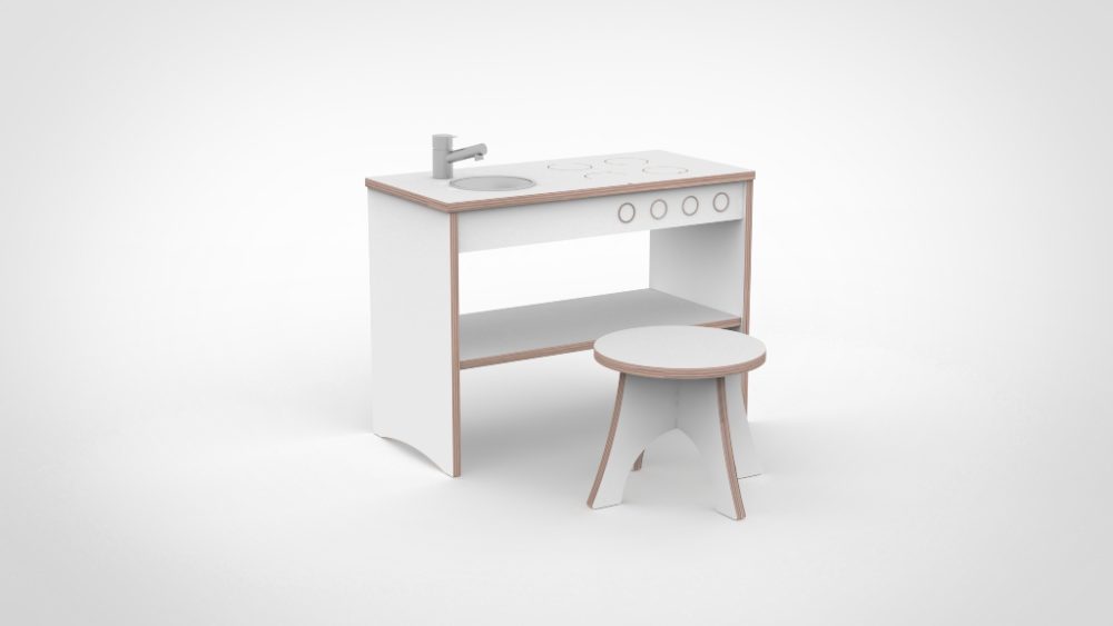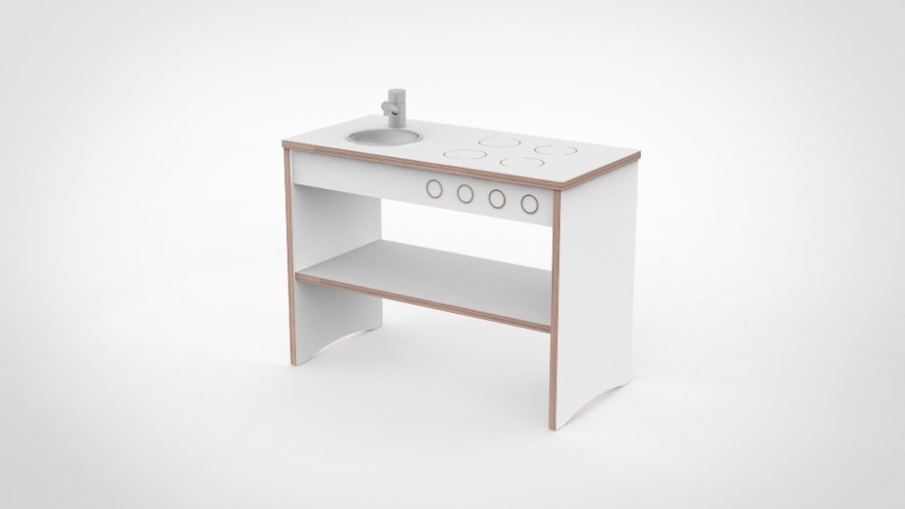 Het knusse hoekjes keukentje is bijzonder veelzijdig: gebruik het als zelfstandig speelelement in een speelhuis of integreer het in onze knusse hoekjes configuraties (2, 3 of 4 hoeken). Zo creëert u een complete rollenspelomgeving waar kinderen zich veilig en uitgenodigd voelen om te spelen. Het keukentje is standaard uitgevoerd in wit HPL en optioneel verkrijgbaar met een bijpassend krukje voor extra zitcomfort tijdens het ‘koken’. Perfect te combineren met onze poppenwieg, poppenhuizen en andere rollenspelelementen.