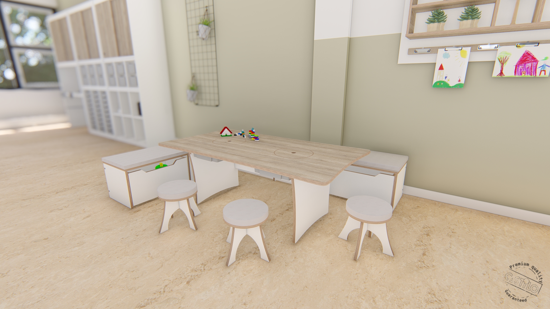 Materiaal en veiligheid Vervaardigd in de Castilo werkplaats in Opmeer uit FSC-gecertificeerd berkenmultiplex. Afgeronde hoeken. Veilig voor gebruik in kinderopvang en basisonderwijs.