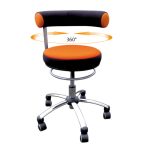 De Sanus standaard is gebouwd op een stevig, verchroomd vijfteens onderstel met geremde wielen. De wielen zijn bewust kleiner dan standaard, waardoor de stoel makkelijk onder lage kindertafels past. Onbelast blijft de stoel op zijn plek staan; zodra u gaat zitten, is de stoel licht verrijdbaar en wendbaar. De ronde zitting met dikke schuimvulling biedt maximale bewegingsvrijheid en nodigt uit tot kleine, gezonde houdingswisselingen. De bekleding is verkrijgbaar in slijtvast kunstleer (eenvoudig te reinigen) of in stof, beide in diverse kleuren.