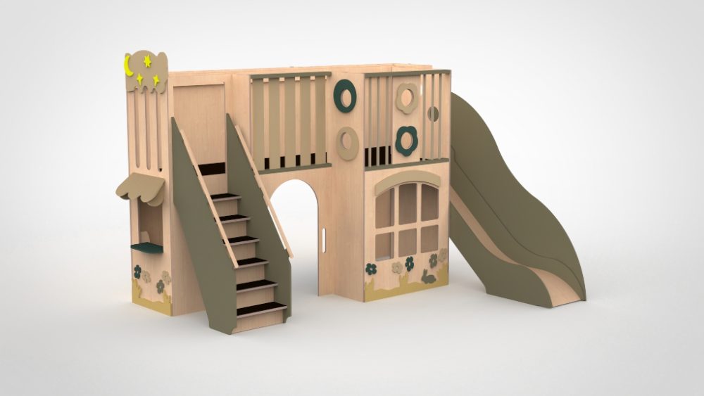 De Linia 110++ is de keuze voor locaties die het maximale willen: de grootste speelwaarde, de rijkste details en de meeste aankleedmogelijkheden — in een strakke lijnvorm die de ruimte niet overweldigt. Het brede voorfront met raamwerk geeft het winkeltje en de speelzone beneden een extra dimensie, terwijl de luifel zorgt voor sfeer en geborgenheid. Elk kleuronderdeel is afzonderlijk in te stellen, waardoor u dit toestel volledig op uw interieur kunt afstemmen.