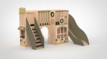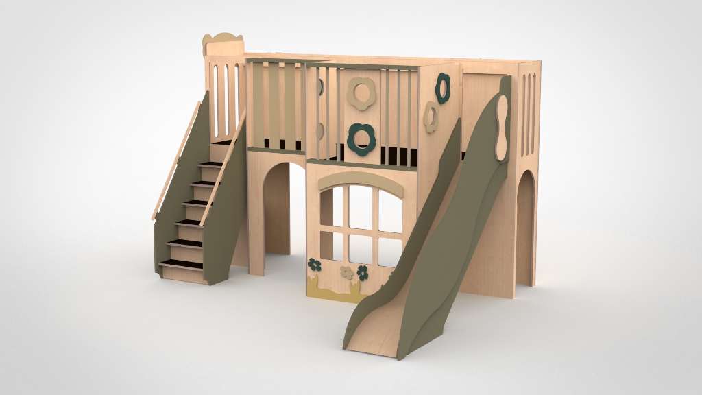 Vervaardigd van FSC-gecertificeerd berkenmultiplex, afgewerkt met VOS-vrije lak op waterbasis. Antislipcoating op traptreden en platformvloer. Gecertificeerd conform EN 1176. Let op: bij platformhoogte boven 60 cm is een landingsmat verplicht — verkrijgbaar in diverse kleuren.