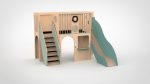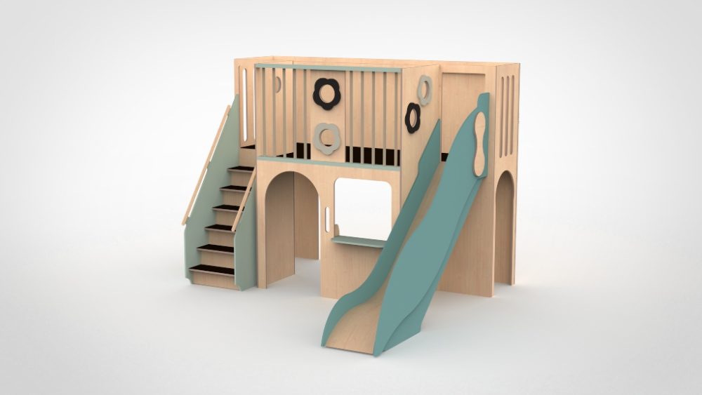 De Linia 110 tilt de speelervaring letterlijk naar een hoger niveau. Het 110 cm hoge platform, de extra lange glijbaan en de stevige trap maken dit toestel tot een serieuze uitdaging voor kleuters van 3 tot 6 jaar — in dezelfde strakke lijnvorm die zo goed aansluit bij moderne kinderopvanginterieurs. Langs een wand plaatsen of als ruimtedeler gebruiken: de Linia 110 past op beide manieren naadloos in uw ruimte.