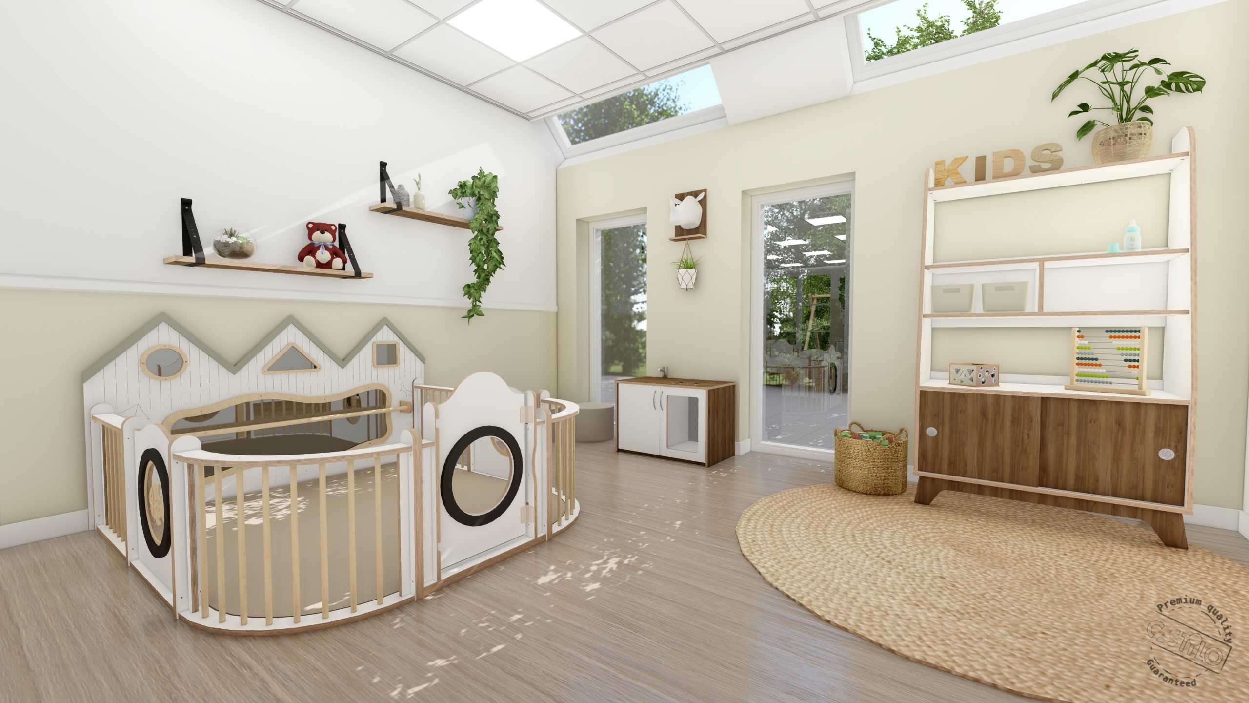 Voor grotere babygroepen is deze opstelling de ideale keuze. Meer speelruimte betekent meer bewegingsvrijheid, minder onderlinge fricties en meer rust op de groep. Het strandthema is tijdloos en past in vrijwel elke groepsruimte. De opstelling is volledig vrijstaand — verplaats hem wanneer u wilt, zonder muurverankering. Alle strandsilhouetten zitten veilig tussen twee lagen gerecycled plexiglas. Castilo personeel installeert de complete opstelling op locatie.