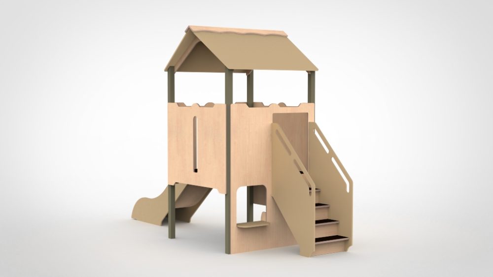 Vervaardigd van FSC-gecertificeerd berkenmultiplex, afgewerkt met VOS-vrije lak op waterbasis. Antislipcoating op traptreden en platformvloer. Stevig hekwerk rondom het platform. Gecertificeerd conform EN 1176.