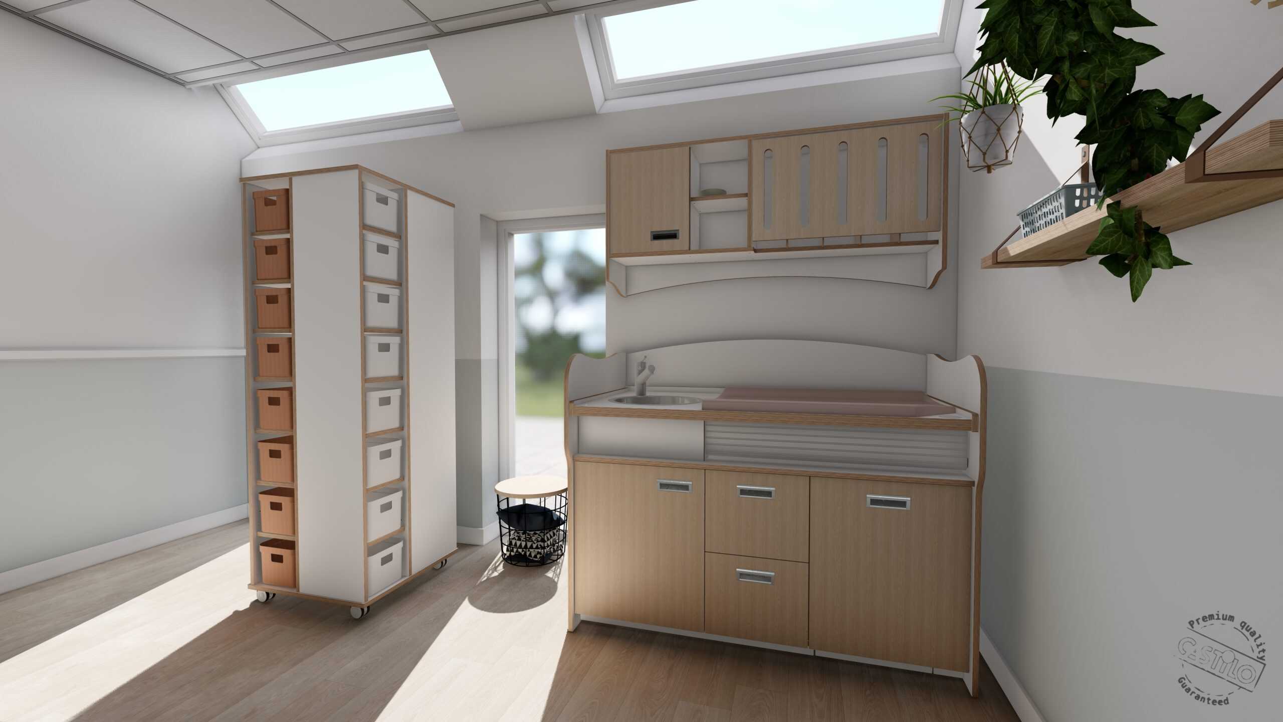 Deze mandjes carrouselkast van wit HPL heeft 8 vakken aan 4 kanten waar totaal 32 mandjes van 13L in passen. De kast is inclusief mandjes en standaard met wielen uitgevoerd.