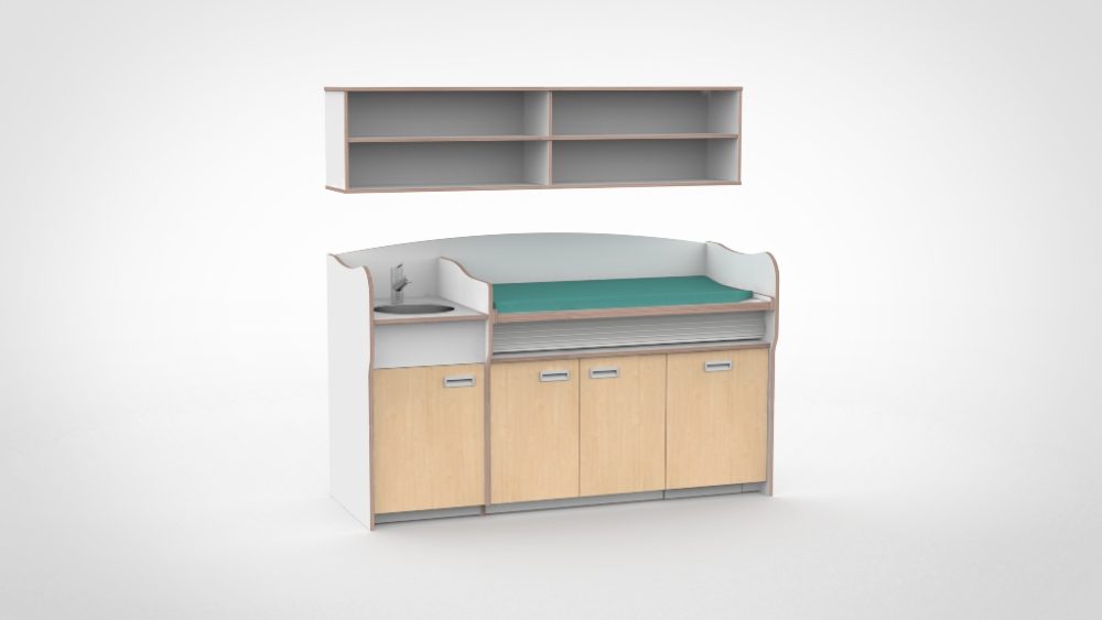Verrijdbare commode 100 met trap en luierdispenser