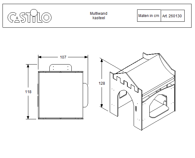 Het Multiwand Kasteel laat zich uitstekend combineren met andere Castilo producten. Voeg verkleedkleren toe met ridderpakken en prinsessenjurken, plaats speelridders en paarden ervoor, of combineer met een troon en attributen voor koninklijk spel. Zo ontstaat een complete sprookjeswereld die kinderen uitnodigt tot avontuurlijk en fantasierijk rollenspel.