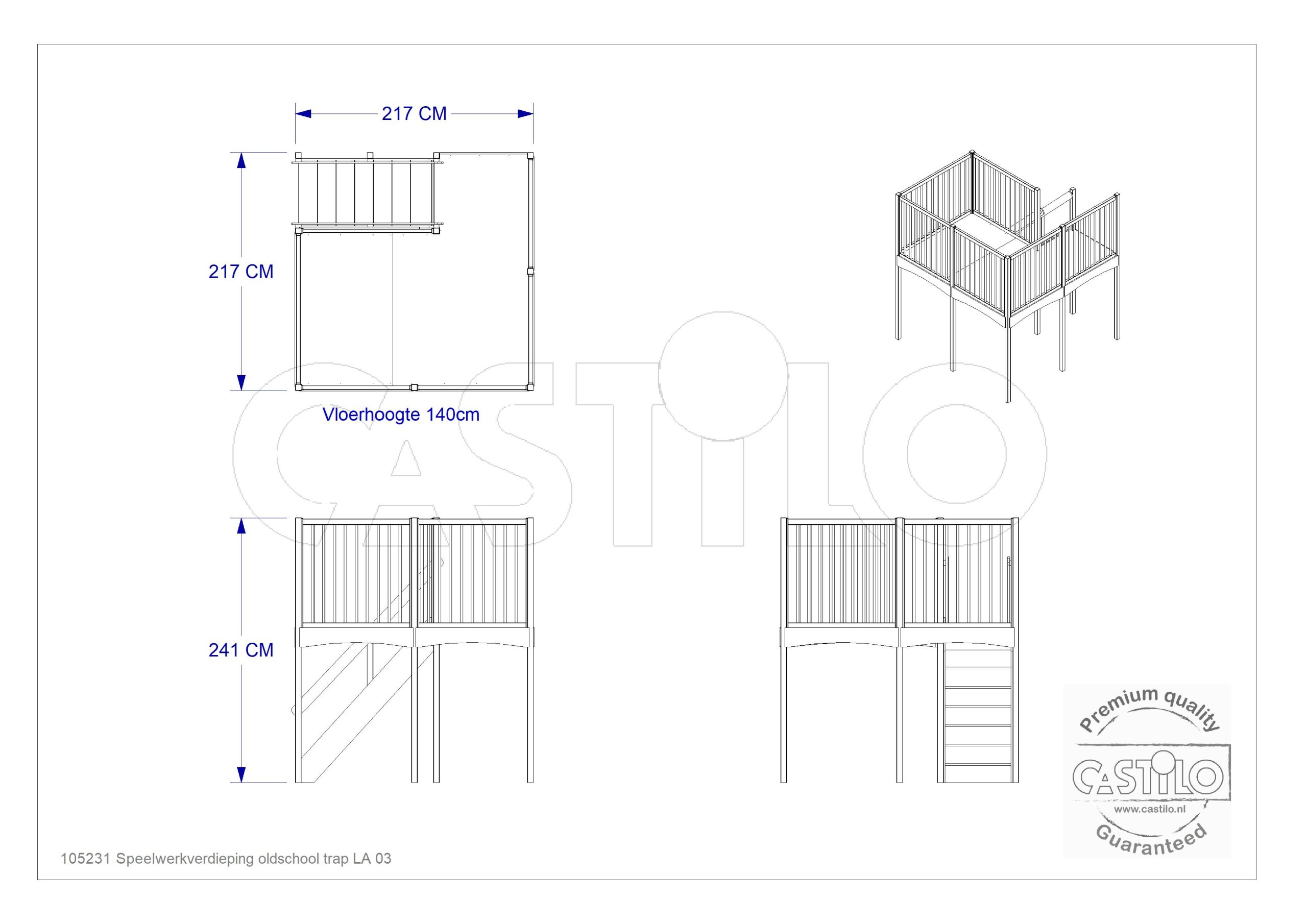 Materiaal en veiligheid Vervaardigd in de Castilo werkplaats in Opmeer uit FSC-gecertificeerd berkenmultiplex. Het loopvlak is voorzien van een antisliplaag. Gecertificeerd door het Keurmerkinstituut; logboek met certificaat na montage.