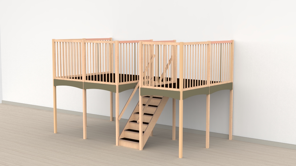 Castilo Meubelmakers / Alle producten / Speeltoestellen / Speelwerkverdiepingen / Oldschool speelwerkverdiepingen / Trap midden / Oldschool speelwerkverdieping trap midden 01
