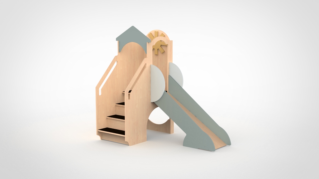 De tijdloze huisvorm past in vrijwel elke inrichtingsstijl en trekt kinderen van 1,5 tot 4 jaar keer op keer aan. Het speelhuisje bovenop het platform biedt een veilig eigen plekje, terwijl de glijbaan voor actieve beweging zorgt. Ideaal als vast speelpunt in de groepsruimte.
