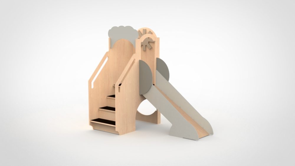 Vervaardigd van 18 mm FSC-gecertificeerd berkenmultiplex, afgewerkt met VOS-vrije lak op waterbasis. Antislipcoating op traptreden en vloer. Gecertificeerd conform EN 1176.