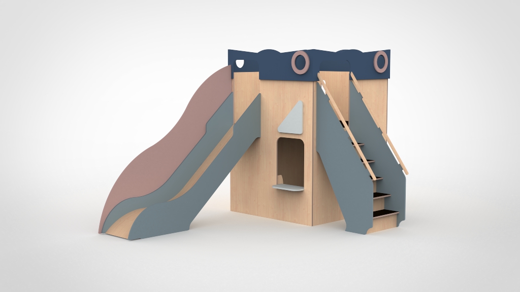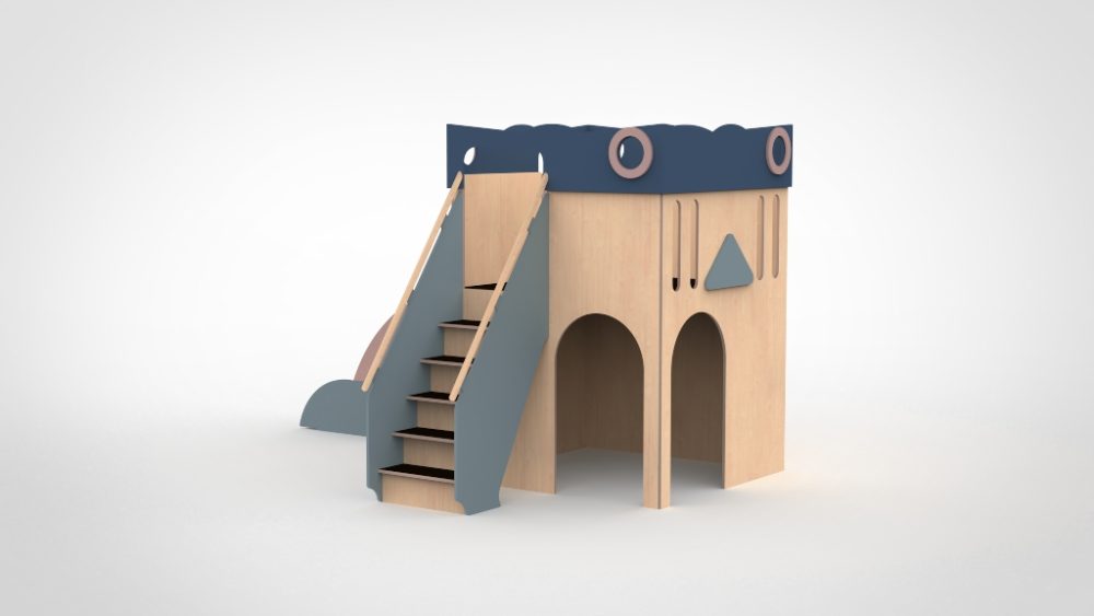 De Pico 95 hoek maakt handig gebruik van de hoek van uw ruimte. Het 95 cm hoge platform, de lange glijbaan en de trap bieden kleuters van 3 tot 6 jaar volop uitdaging — terwijl de speelse getande dakrand en de doorkijkopening het toestel een eigen, herkenbaar gezicht geven. En toch hoeft u nergens aan vastgezeten: de neutrale basisvorm is met eenvoudige aankleding volledig naar uw hand te zetten. Uw thema, uw sfeer, uw kinderopvang.