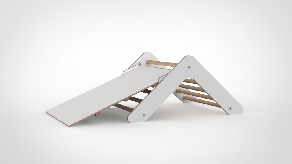 Voor extra speelvariatie is de Pikler wit uit te breiden met een glijbaan/trap element (klein). Dit element is niet standaard inbegrepen, maar kunt u los bijbestellen. Zo kunnen kinderen afwisselend klimmen en glijden, wat de klimervaring nog uitdagender en leuker maakt.