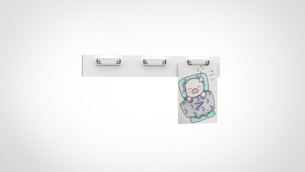 Met 3 stevige metalen klemmen verwisselt u kindertekeningen snel en gemakkelijk. Geen gedoe met punaises of plakband die beschadigen. De klemmen houden het werk stevig vast, zonder vouwen of scheuren. Perfect voor kleine groepen of om een selectie van de mooiste werken te tonen. De compacte afmeting maakt de lijst geschikt voor kleinere wandruimtes of om meerdere lijsten naast elkaar te combineren.