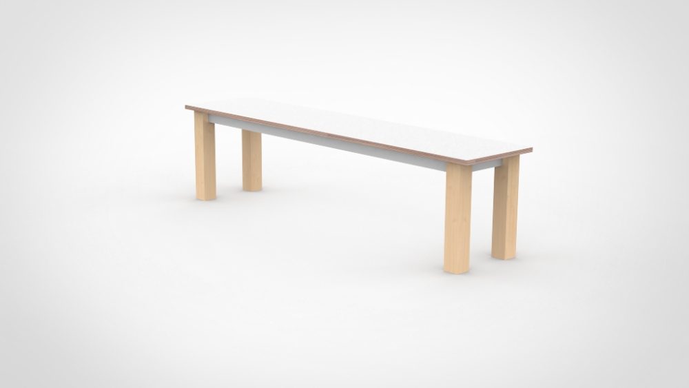Blad van hoogwaardig multiplex met slijtvaste HPL-toplaag. Massieve houten poten voor maximale stabiliteit. Afgeronde randen voor veilig dagelijks gebruik.