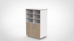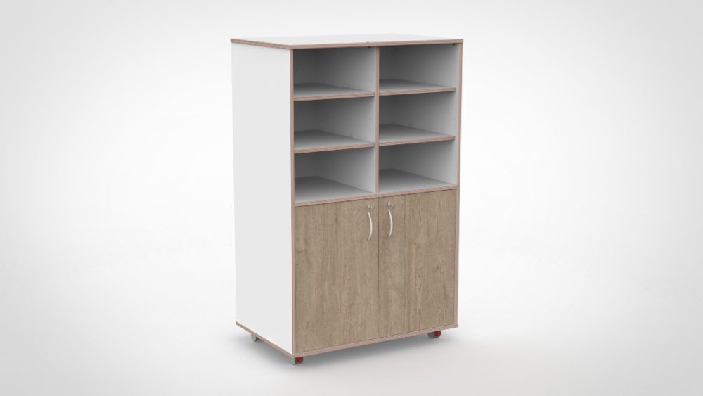 De Roomdivider 100×160 is een compacte, dubbelzijdige kast met open vakken aan beide zijden. Gebruik de kast als boekenkast waar kinderen van twee kanten boeken kunnen pakken, als materiaalkast met verschillende materialen per zijde, of puur als ruimteverdeler die structuur aanbrengt in een open groepsruimte.