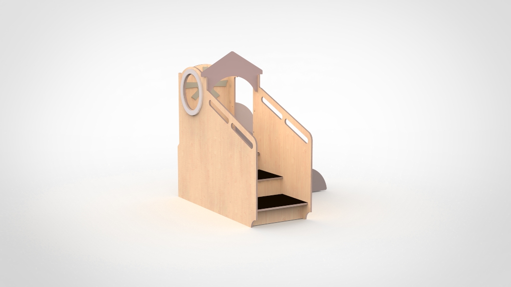 Vervaardigd van 18 mm FSC-gecertificeerd berkenmultiplex, afgewerkt met VOS-vrije lak op waterbasis. Antislipcoating op traptreden en vloer. Gecertificeerd conform EN 1176.