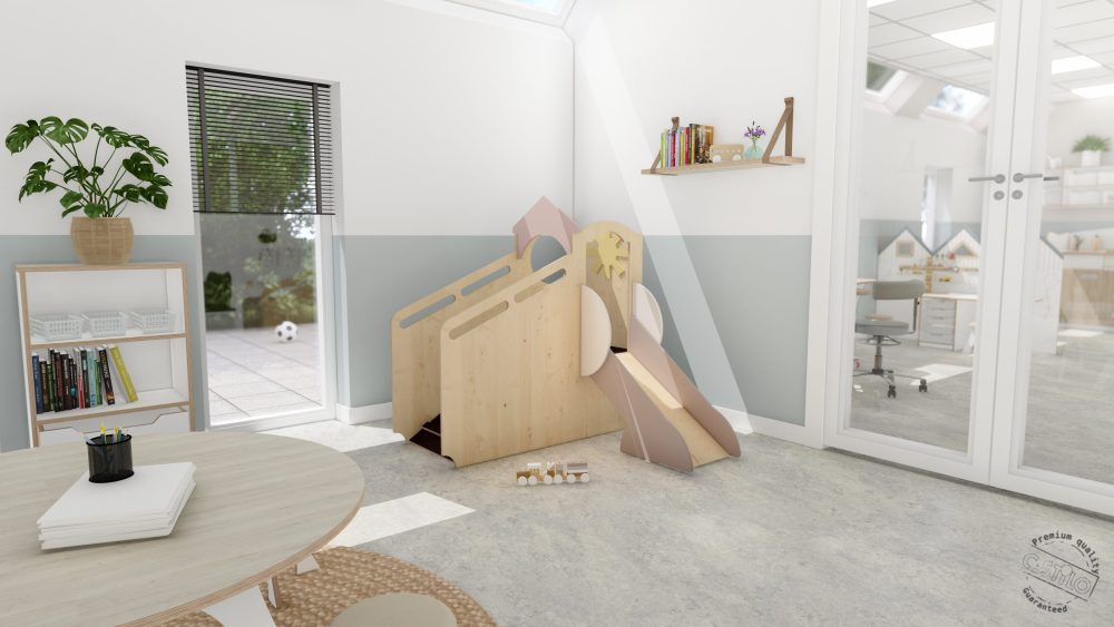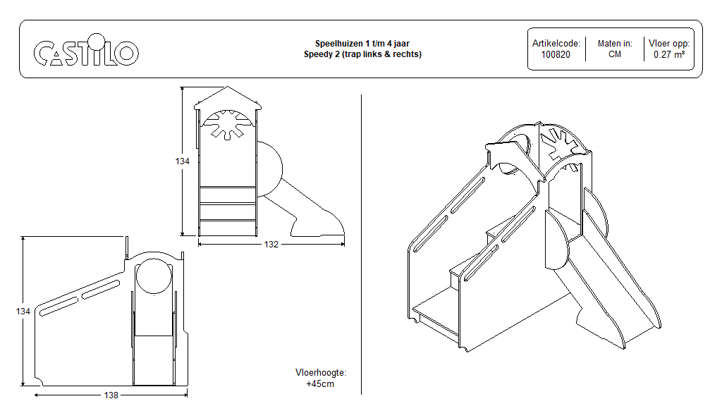 Geschikt voor kinderen van 1,5 tot 4 jaar. Leverbaar in tal van kleuren, rechts of links uitvoering. Optioneel met afsluitbaar deurtje. Montage op begane grond inbegrepen, levering door heel Nederland.