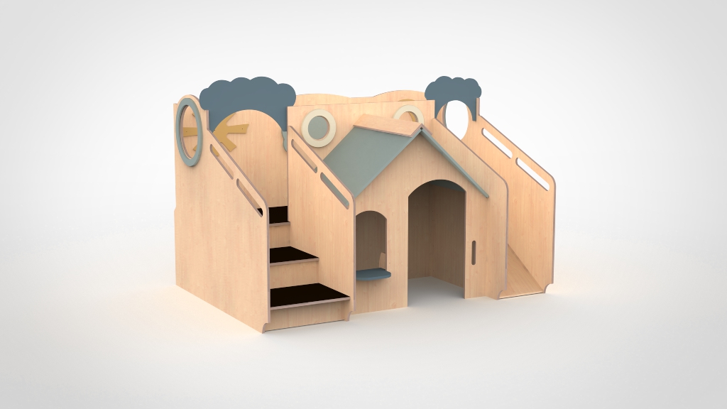 Vervaardigd van 18 mm FSC-gecertificeerd berkenmultiplex, afgewerkt met VOS-vrije lak op waterbasis. Antislipcoating op alle loopvlakken en traptreden. Gecertificeerd conform EN 1176.